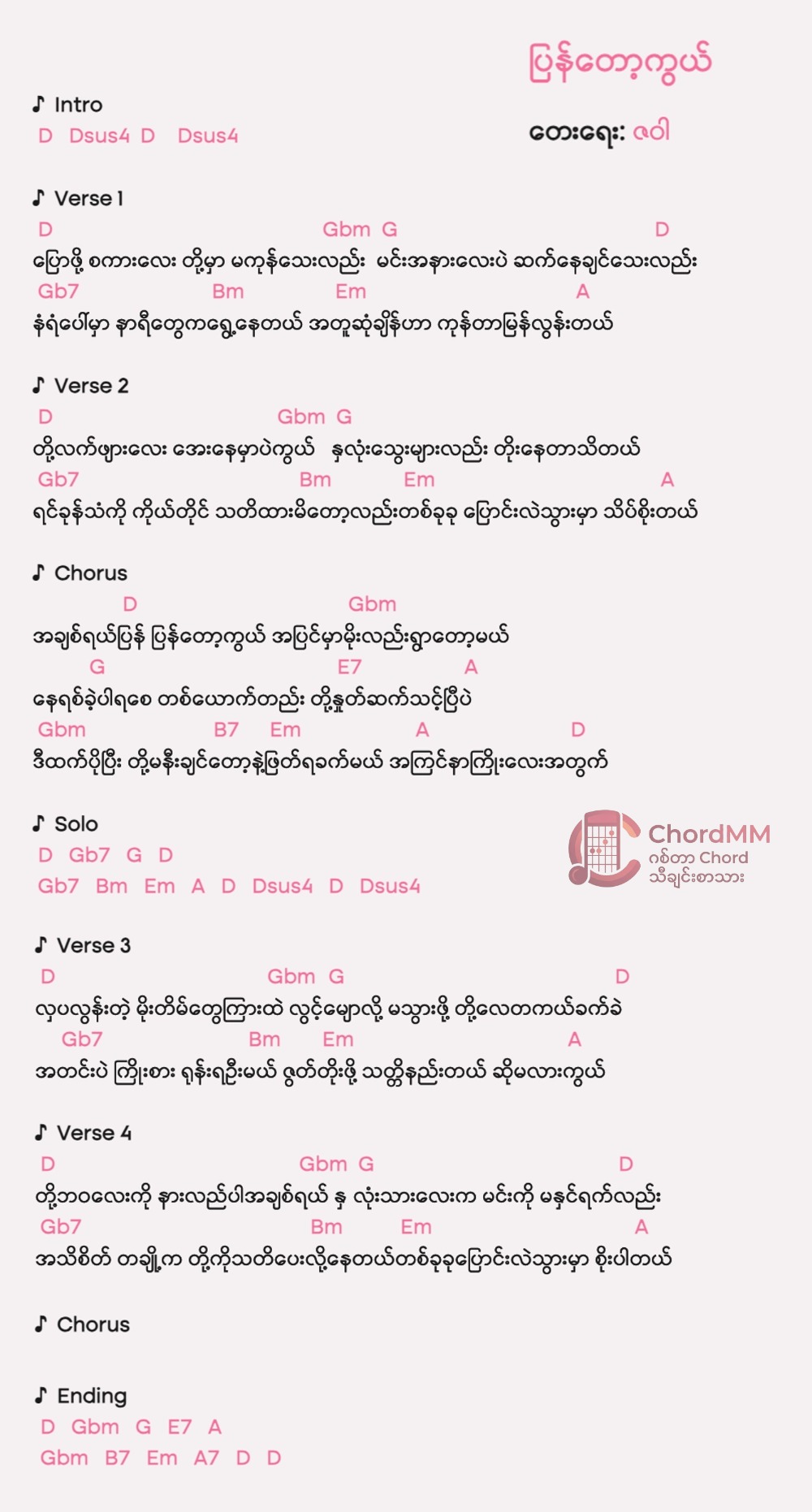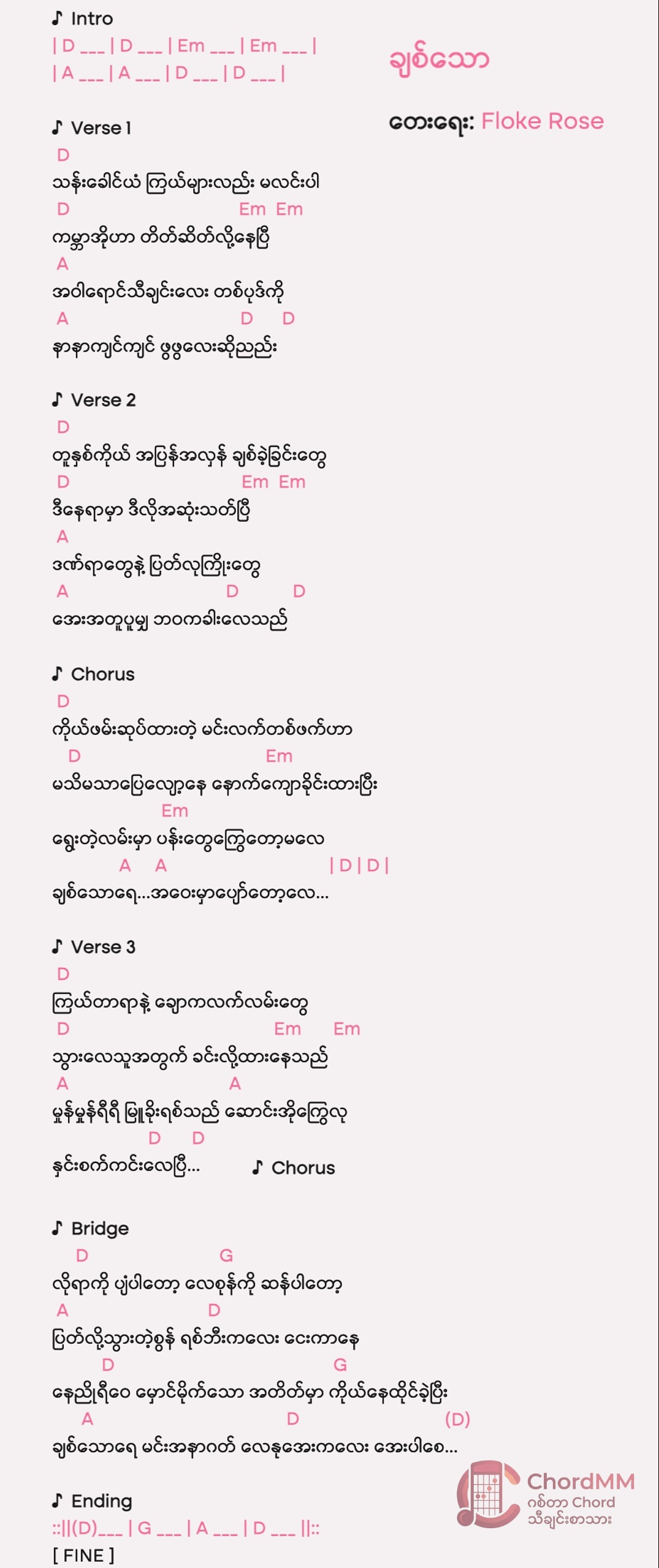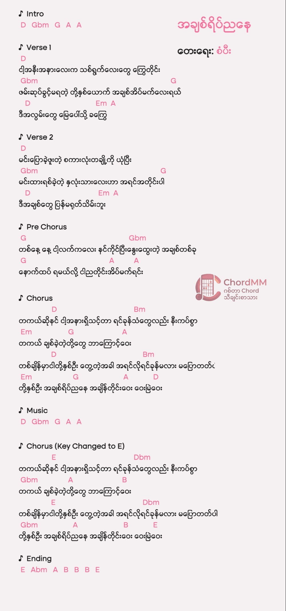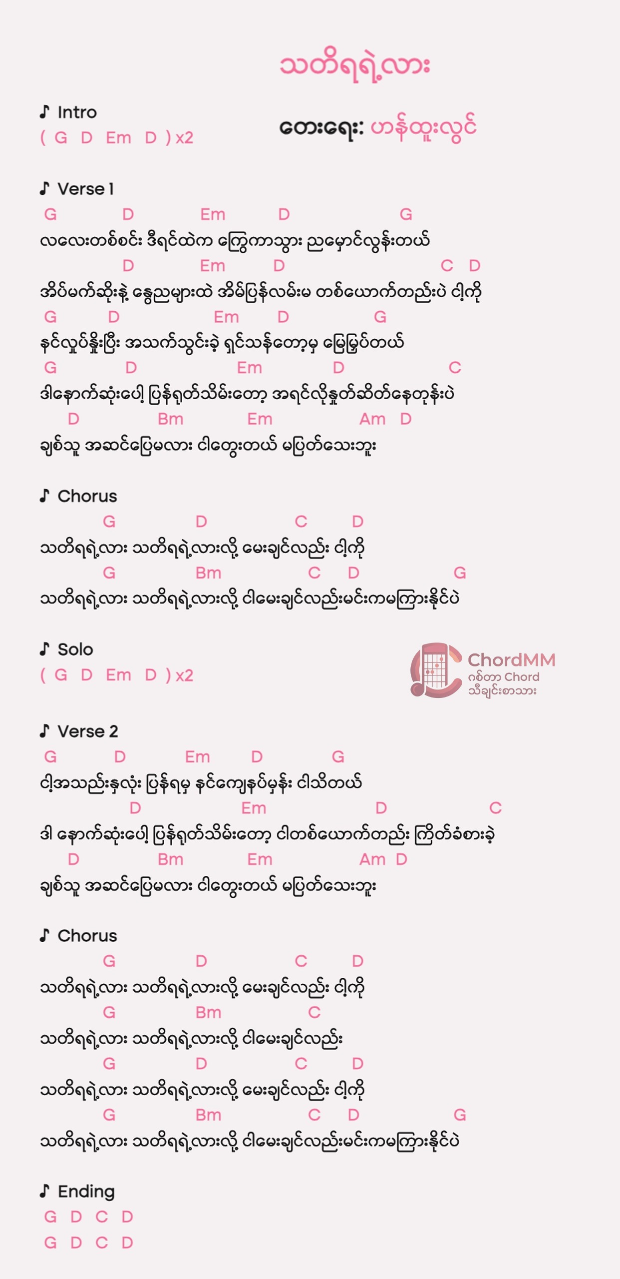 Key: C Composer: ဇဝါ Album: လမ်းဆုံ